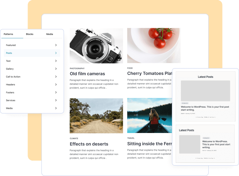أنماط الكتل هي تخطيطات كتل مصممة مسبقًا يمكننا إدراجها بسهولة في محتواهم. يمكن أن تساعد هذه الأنماط في توفير الوقت وإنشاء تصاميم جذابة بصريًا. يسمح لنا بإنشاء قوالب مخصصة باستخدام القالب القائم على الكتل.
